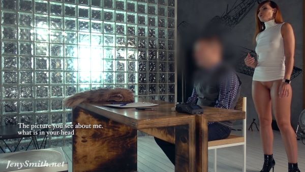 Jeny is a real (!) student of psychology at a University. She got a home task from her professor to do a psychological test. She changed his task a bit and added an erotic, a nude, component to the test. In this “Real Psychologist” subseries of Jeny’s long series of Psychology tests, she interviewed four candidates. And Jeny decided whether and when she can get nude in front of her “victims”. Here is her second victim. Jeny started sitting behind the desk, in a white T-shirt, no underwear. And yes, she wore this short T-shirt as a mini dress, so there wasn’t any skirt! She remained seated when her victim entered.