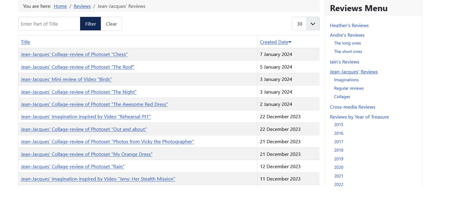 We go now to the sidebar and click on “Jean-Jacques’ reviews”, the following page opens …