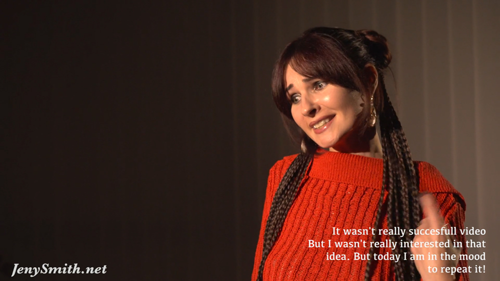 The subtitles tell us she has been requested by many members to repeat an idea from an earlier video.* She didn’t think the previous one was a success but was now willing to give it another go. Knowing Jeny, she’s sure to have thought up some improvements!