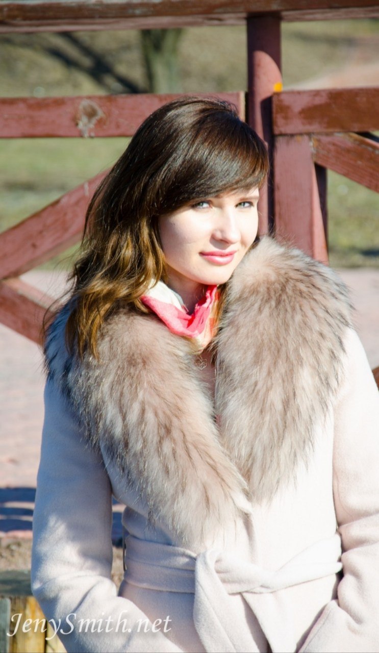 Jeny is posing outdoors, in a skate park. It is cold, so she is dressed in a winter coat - but she is naked under her coat, except stockings and high heel boots. This is the reediting of a set, published half a year after the shooting. Jeny said: "This is new high res edit of old pics from a skate park. Alex made new edit of them to use in promo. We had no luck with sun at my back and the pictures are in shadows :o("