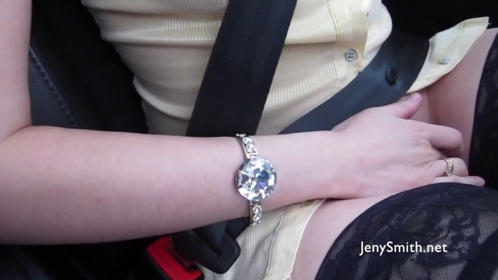 This is Jeny on her first bottomless car drive published on her site. It was published in early 2015, but the video had been shot already a few years earlier. Jeny shows her milk tits and mentions her pregnancy. Jeny is driving in a yellow blouse and black stockings, nothing else except shoes, so bottomless. The camera wanders between her legs, and Jeny is rubbing herself …