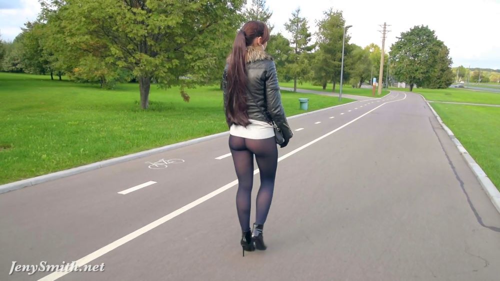 Jeny said: "This video looks like the "autumn 2016" video because it was made the next day after autumn was shot. I wanted to pretend i was waiting for a bus on a crowded bus stop but suddenly figured out that grey sweater is much shorter on my back making my butt fully open. For the first 2 minutes as i step out of the car i've got so much attention so it was not comfortable to go in a public place. that's why we made it in a park."