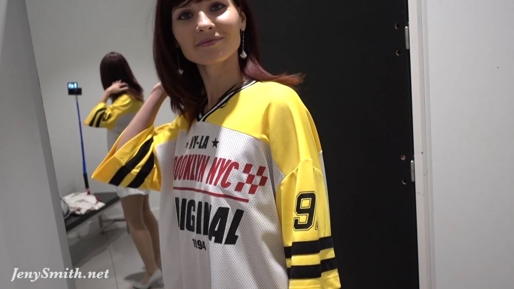This is one of the best “fitting room” videos of Jeny, where Jeny is trying on different clothes in two different shops. Jeny wanted to wear selected clothes on her “Paradise Island” vacation. The video is called “belated” because it was only published after the first vacation videos already appeared on her site. Jeny went shopping in a bell-shaped skirt with flower print and skin-coloured stockings. Jeny tried on an orange bodysuit, which she used several times in her “Paradise island” videos and photosets, you will find two examples in “Related media” above!