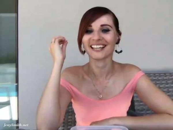 Jeny on summer vacation on „Paradise island”. She announced to do some live shows for her subscribers, but otherwise don’t shoot many videos or photosets since she wanted to have time as a wife and mother. Nevertheless, for this video Jeny shot some vacation selfies: naked Jeny in the kitchen of her vacation home, preparing fish as the next family meal …