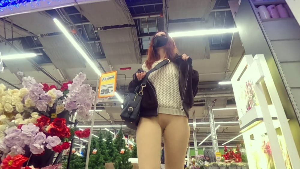Before Christmas, Jeny went shopping in super market, end of November 2020, in Covid times, so masks have been mandatory. But Jeny pretended that she didn’t realize how see-through her yoga pants were (in fact, Jeny was wearing 60 den pantyhoses). While shopping, at least some other customers … and the cashier (!), as Jeny told us afterwards … noticed her camel toe and her landing strip shining through.