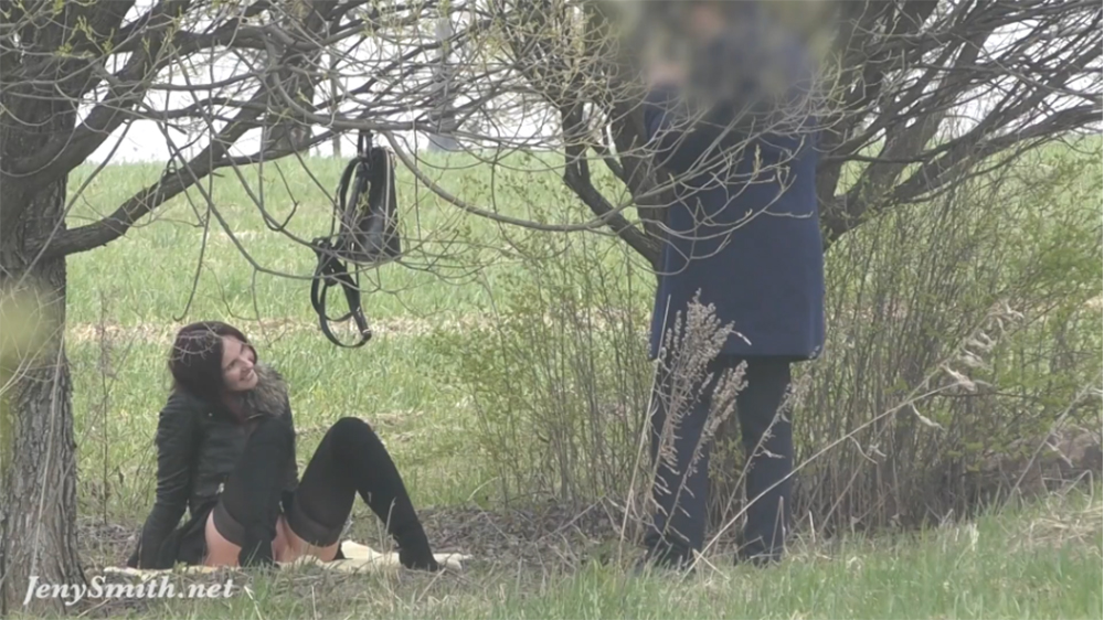 Jeny has a date with a stranger, walking through a park, finally sitting in the grass to relax. The stranger did not detect Jeny's secret up to now: Jeny is wearing a short skirt, but no underwear. The guy is speechless ... and more interested at the same time. As both are proceeding, Jeny starts to undress, he is getting his private photo shooting, and finally Jeny sends him away to take her clothes with him. Jeny is alone, on the meadows, naked! Will he return in time? (ATS)