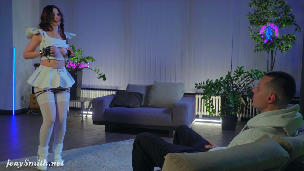 Jeny invited Nsh again, for an exciting strip-tease show in her office. Jeny wore her Snowflake costume from last Christmas (2024) again (see “Related media” above). And Jeny did a very slow, very seducing, extremely arousing and erotic strip-tease in front of Nsh who took place on the sofa. Jeny in a combination of white stockings and white pantyhose made camel toes first, then went topless, playing with her nipples and boobs … and in the following, hot Jeny made the Snowflake costume melt away step by step …