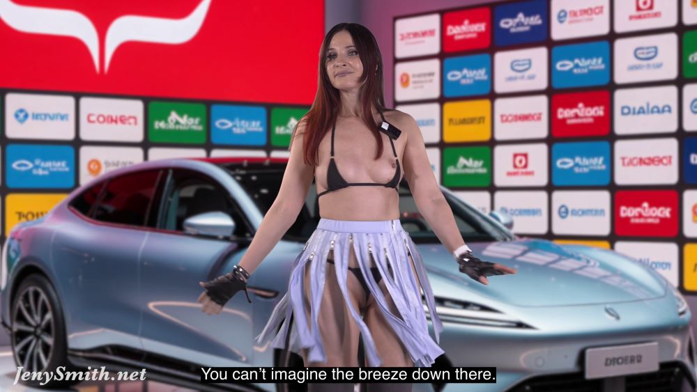 This is a 45 minutes movie, shot in their studio, but in Chromakey with different AI generated backgrounds. The story is about one of Jeny’s fantasies, in her former job as a teacher, being hired for a side job as a promo girl on a car exhibition. The movie starts in the classroom, where she is telling her students about the side job and inviting them to the show – not knowing how her “official promo girl outfit” would look like. And this outfit turned out to be very revealing.